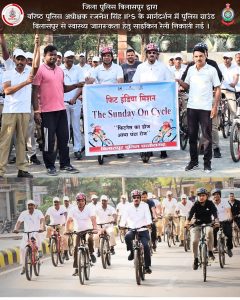 जिला पुलिस बिलासपुर द्वारा वरिष्ठ पुलिस अधीक्षक रजनेश सिंह IPS के मार्गदर्शन में पुलिस ग्राउंड बिलासपुर से स्वास्थ्य जागरूकता हेतु साइकिल रैली निकाली गई.फिट इंडिया मिशन के तहत – ” THE SUNDAY ON CYCLE” “फिटनेस का डोज आधा घंटा रोज” की थीम पर निकली गई साइकिल रैली.